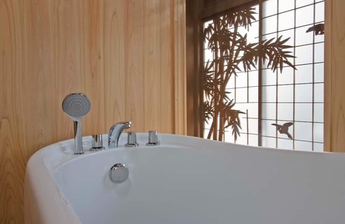 Luxurious hideaway that retains the atmosphere of a 150yearold traditional house Enjoy the private sauna and take an openair wellwater bath or a jacuzzi with a lush courtyard view Passing through the earth floor and the inner entrance you will find a Japanesestyle room with its delicately carved wooden transom bright vermilion walls and gorgeous fusuma Also dont miss the garden view from the top of the steep stairs We wish you a pleasant and relaxing time with friends and family / Room