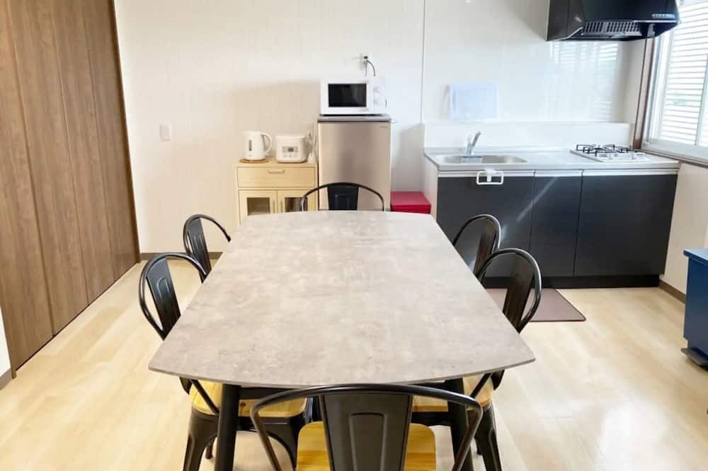 We have simple cooking utensils but no seasonings / It takes about 10 minutes by car to Miyakojima Citys bar district convenience stores and supermarkets The room is 2LDK and can accommodate up to 8 people With free parking free WiFi and a kitchen its perfect for remote work and longterm stays